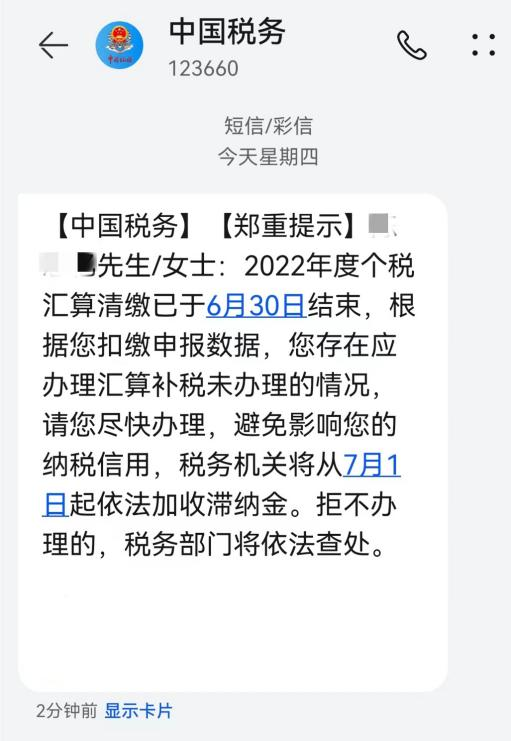 最近,有小伙伴有收到税务机关发送的补税申报未办理的提示短信:大家收到短信后不要直接认为是诈骗短信,一定要登录个税APP去检查一下,因为已经有自然人不配合税务局检查,从多处任职单位取得收入,税局获取其个人银行流水,罚款1.5倍的真实案例了!我局于2022年9月22日起对你(家庭地址:江西省****)自2019年1月1日至2021年12月31日期间从多处任职单位取得收入未按规定办理自然人年度汇算清缴的纳税申报情况进行检查,违法事实及处罚决定如下: