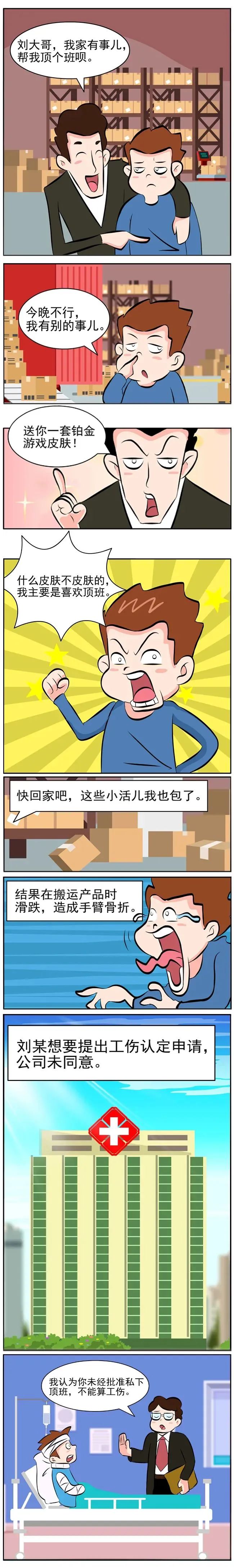本案中,首先,刘某受伤时尽管不在自己的工作时间内,但单位仍在经营,刘某仍然是在用人单位要求职工工作的时间内工作;其次,刘某受伤时也确实是在工作场所内;最后,虽然刘某是未经单位批准而擅自顶班,但作为单位的职工,他顶班时所从事的工作同样是为了单位利益,是因工作原因受到事故伤害的。